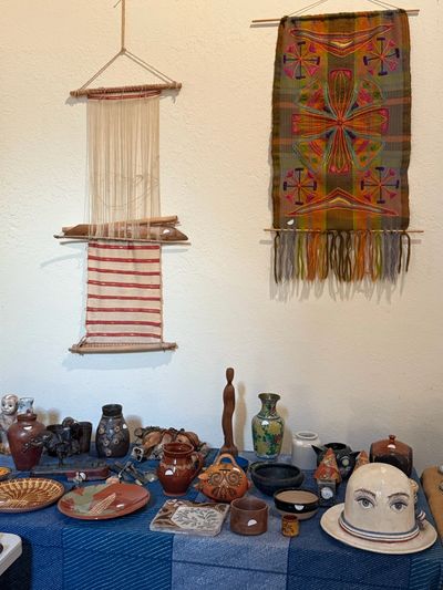 Beautiful contemporary china cabinet, gorgeous French style dining table with six chairs. Amazing antique French ceramics and a huge set of Sabre flatware, lots of incredible Lalique glass pieces, Tim Holmes bronze sculptures, Pre-Colombian artifacts, antique oddities, patio furniture and planters. Waterford crystal, Quimper, Dansk, Spode, Tiffany, Heller, Oriental rugs, amazing vintage Christmas ornaments, Lalique glass ornaments, and incredible Retablo art.